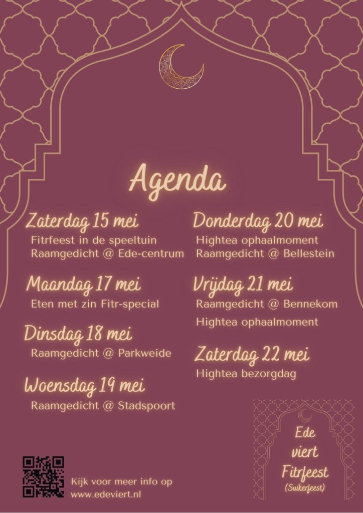* ‘Ede viert Fitrfeest’ wordt geopend met een Kinderactiviteit: ‘Fitr in de speeltuin’, op zaterdag 15 mei in speeltuin Langenhorst.