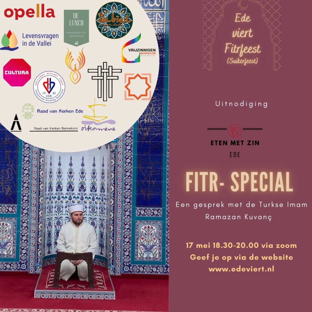 In december 2020 werd het evenement ‘Ede viert Kerst’ georganiseerd door een groot aantal maatschappelijke organisaties. Ondanks de corona-beperkingen werd de gelegenheid geboden op diverse manieren met elkaar het Kerstfeest te vieren. Als Raad van Kerken Bennekom waren we daar bij betrokken. Ook de Islamitische gemeenschap van de gemeente Ede deed mee en zij zeiden toen: ‘We nodigen jullie uit op ons Suikerfeest na de Ramadan, in mei.’ Zo ontstond een nieuw initiatief: Ede viert Fitrfeest. Volgens de diverse Moslimverenigingen is ‘Fitrfeest’ een betere naam dan het meer bekende ‘Suikerfeest’.